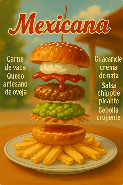 Este fue mi primer producción con IA generativa. Es un pequeño vídeo publicitario para presentar una hamburguesa en el restaurante del Parque Ecológico La Dehesa en Cerezo de Abajo, Segovia.