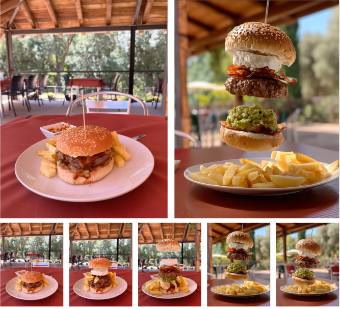 Como base tomamos una foto de la hamburguesa real y a partir de esta imagen vamos iterando hasta conseguir el resultado esperado.